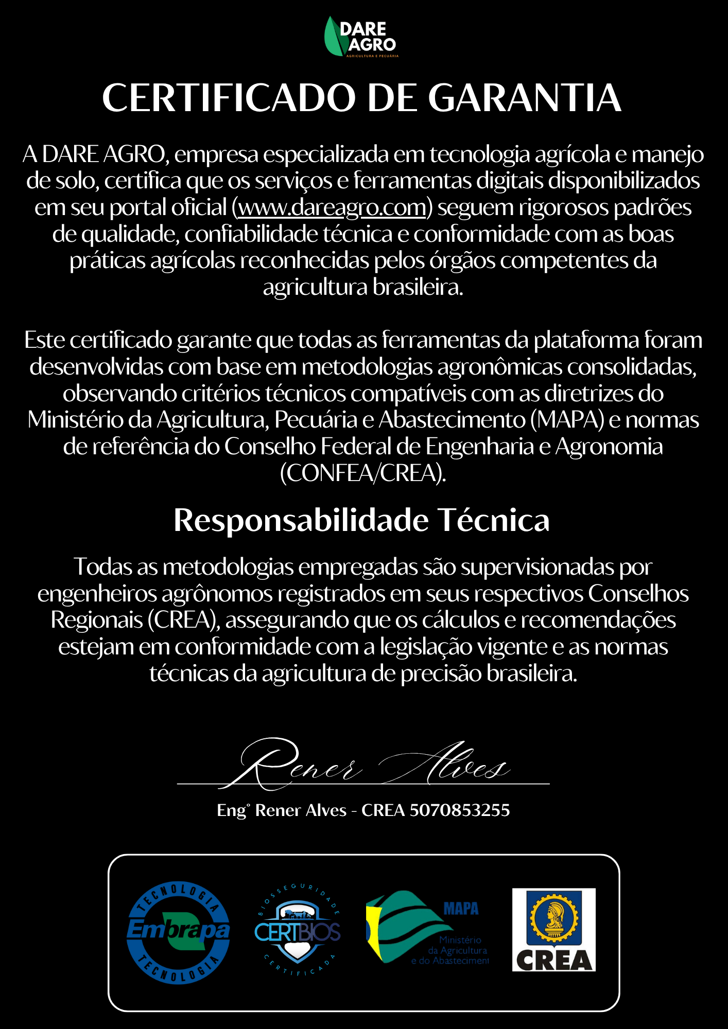 • Recomendações precisas com base em dados reais de campo (emater, embrapa, iac, mapa, ministério da agricultura e pecuária, abnt e outros);